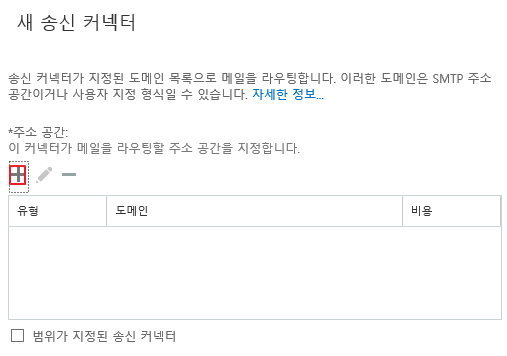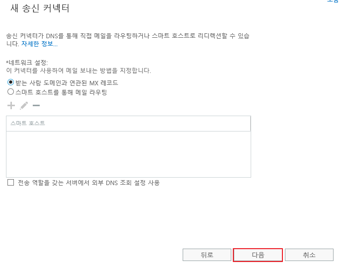 ECP 사이트 - 메일 흐름 - 송신 커넥터 - 새로 만들기