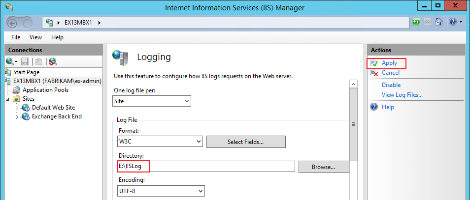 Get-FrontendTransportService | Set-FrontendTransportService -ConnectivityLogPath "$path\Frontend\Connectivity" -ReceiveProtocolLogPath "$path\Frontend\ProtocolLog\SmtpReceive" -SendProtocolLogPath "$path\Frontend\ProtocolLog\SmtpSend" -AgentLogPath "$path\Frontend\AgentLog" -DnsLogPath "$path\Frontend\DNSLog" -DnsLogEnabled $true