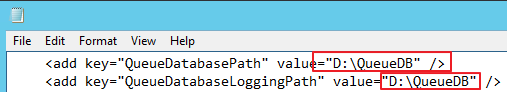 <add key="QueueDatabasePath" value="D:\QueueDB" />
