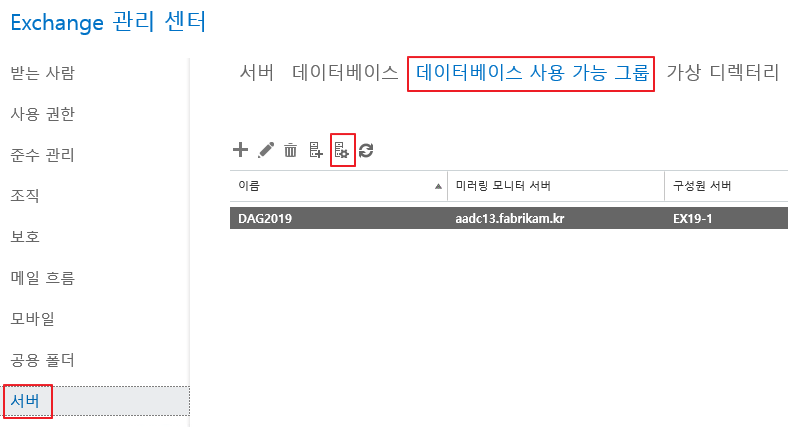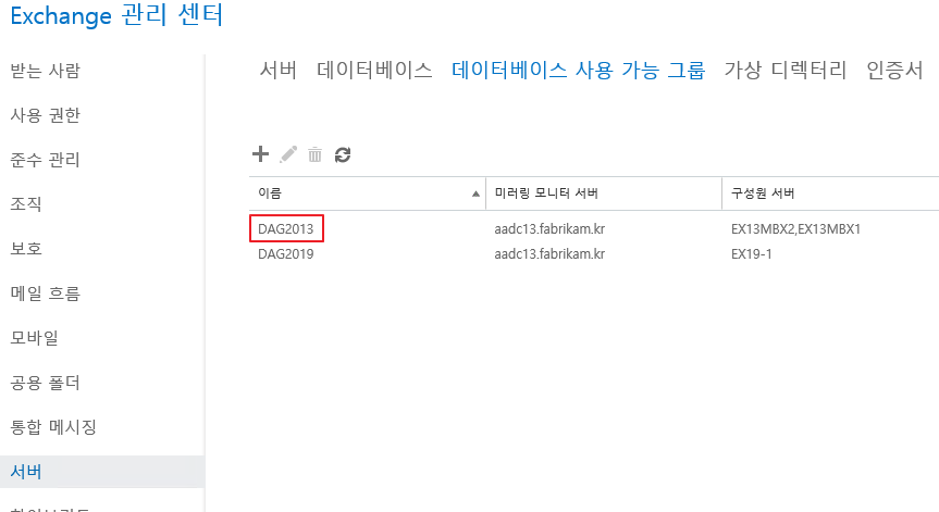 서버 - 데이터 베이스 사용 가능 그룹 - DAG 구성원 관리