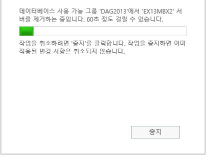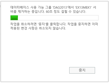 EX2013을 완전히 제거하기전에 EX2013의 DAG를 완전히 제거해야 합니다.
