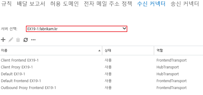 기존 서버에서 사용하던 수신 커넥터를 동일하게 생성 및 설정을 변경합니다.