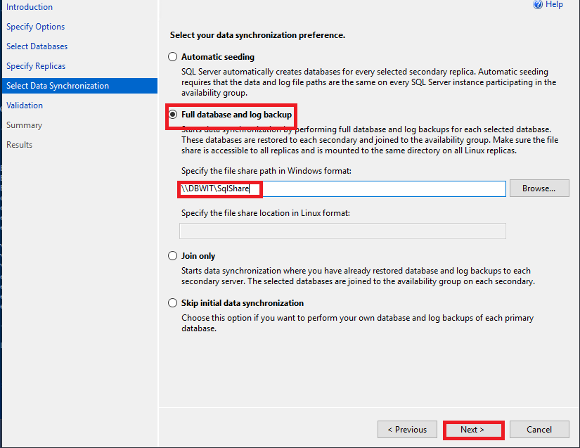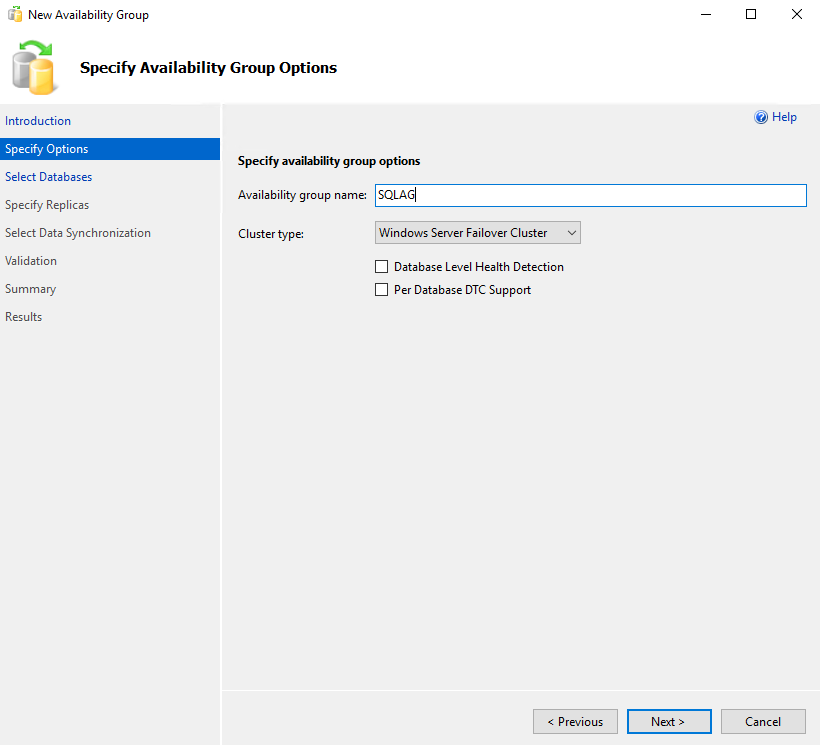 Availability Group Name을 지정합니다.