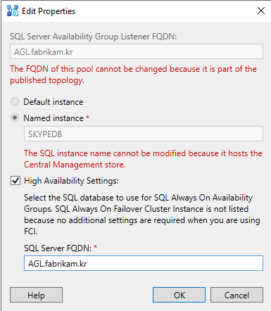 Install-CsDatabase -Update -ConfiguredDatabases -SqlServerFqdn AGL.fabrikam.kr -Verbose