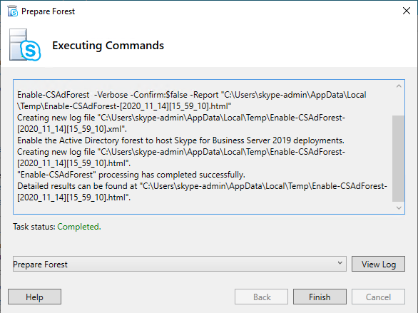 Get-CsAdForest 결과가 LC_FORESTSETTINGS_STATE_READY 이면 정상