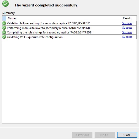 Always on High Availability 메뉴로 이동하여 Failover