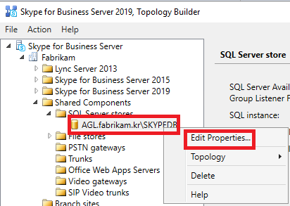 Topology Builder - Shared Components - SQL Server Stores 의 지정된 항목을 우클릭 - Edit Properties