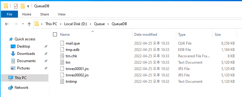 아래와 같이 Queue DB 위치가 변경되었습니다.