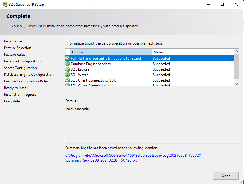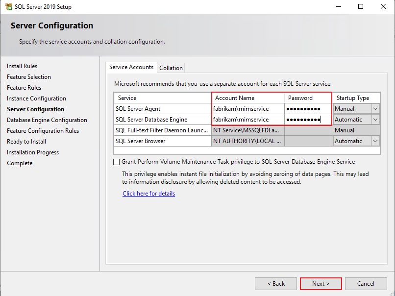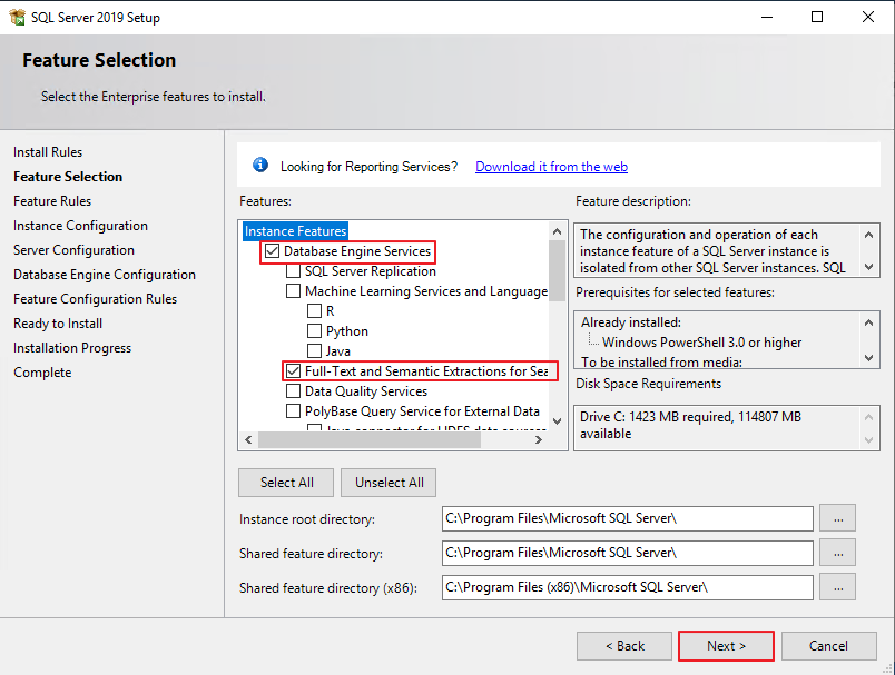 Database Engine Services, Full-text and Semantic Extractions for~ - Check - Next