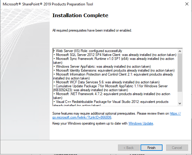 설치 디스크에서 PrerequisiteInstaller 를 실행합니다.