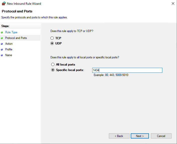 동일한 방식으로 UDP 규칙도 추가합니다. 1434 포트 추가