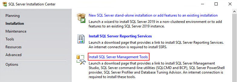 Install SQL Server Management Tools
