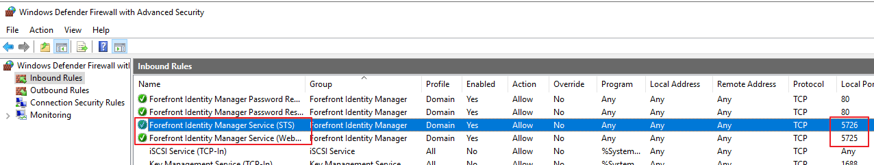 방화벽설정에서 Forefront Identity Manager Service 활성화되어 있는지 확인합니다.