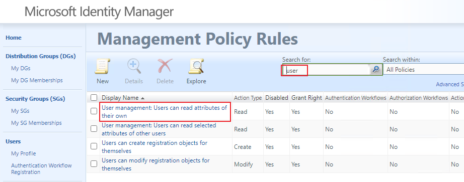 User 검색 - User management: Users can read attributes of their own