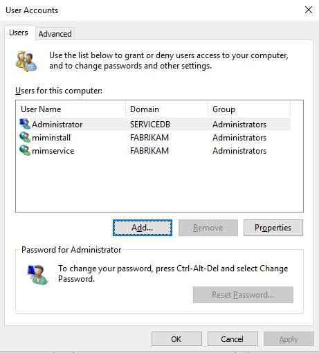 setspn -S http/mim fabrikam\mimpool