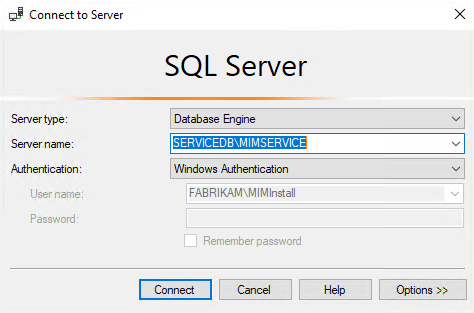 $dbManagedAccount = Get-SPManagedAccount -Identity fabrikam\mimpool