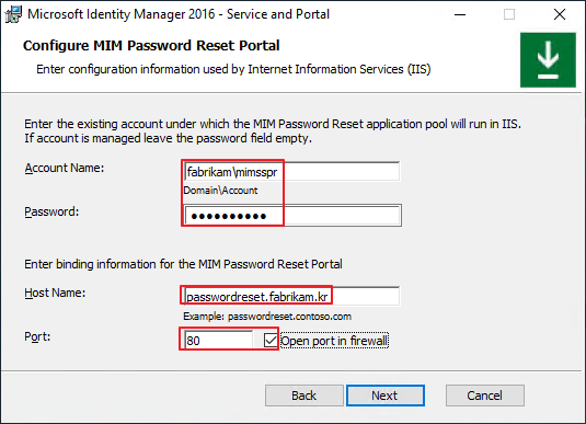 setspn -S http/passwordregistration.fabrikam.kr fabrikam\mimsspr
