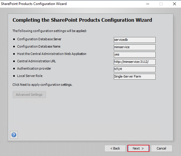 SharePoint 2019 Products Configuration 실행
