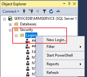 Security - Logins - 우클릭 - New Login...
