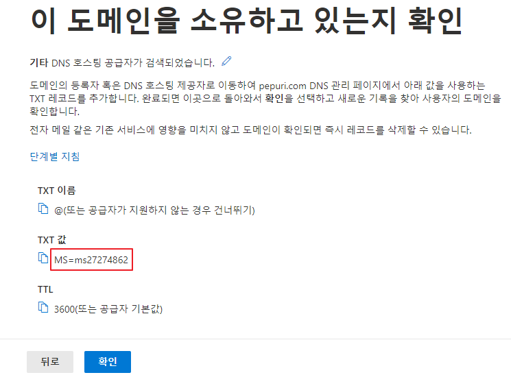 도메인의 DNS 레코드에 TXT 레코드를 추가 합니다.