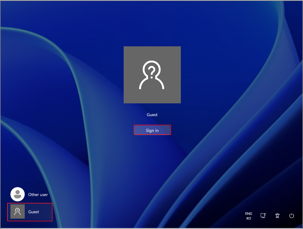 정책 적용이 완료되면, Guest 계정으로 로그인할 수 있습니다.