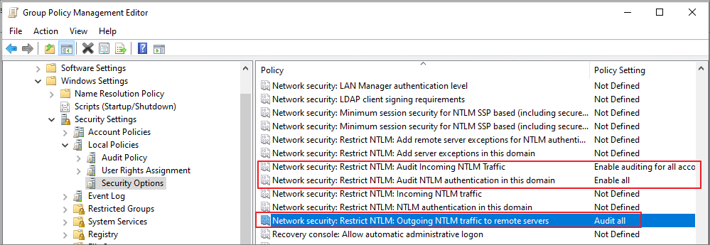 Network security: Restrict NTLM에서 아래의 정책 활성화