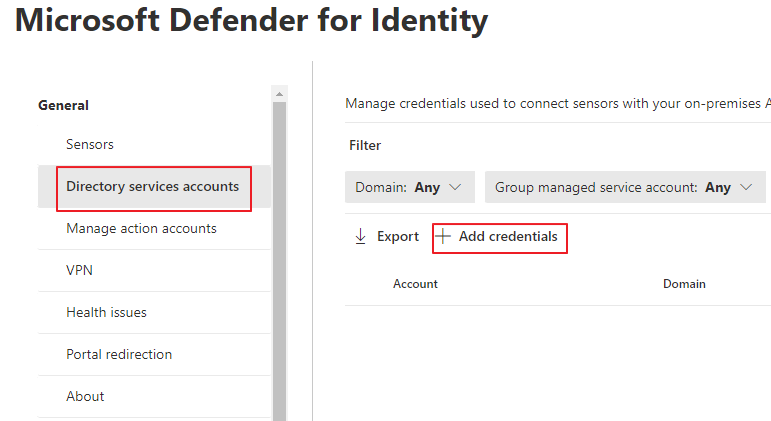 Directoy services accounts -> Add credentials