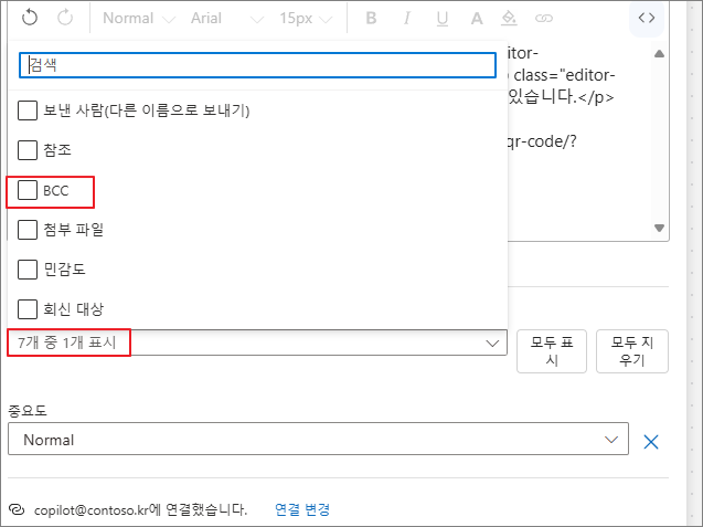 하단의 고급 매개변수를 메뉴에서 BCC에 본인 메일 주소를 추가합니다. (정상 발송여부 체크용)