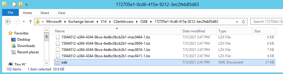 ex) C:\Program Files\Microsoft\Exchange Server\V14\ClientAccess\OAB\172705e1-0cd6-415a-9212-3ec2feb85d63