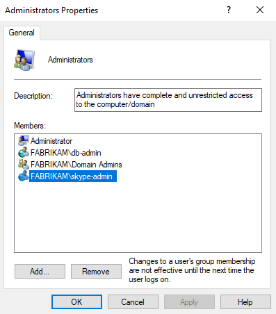 위치를 로컬로 지정한 뒤, Administrators 그룹을 추가합니다.