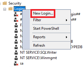 Security - Logins 메뉴로 이동합니다. Skype 서비스 계정이 목록에 없다며 Logins - 우클릭 - New Login