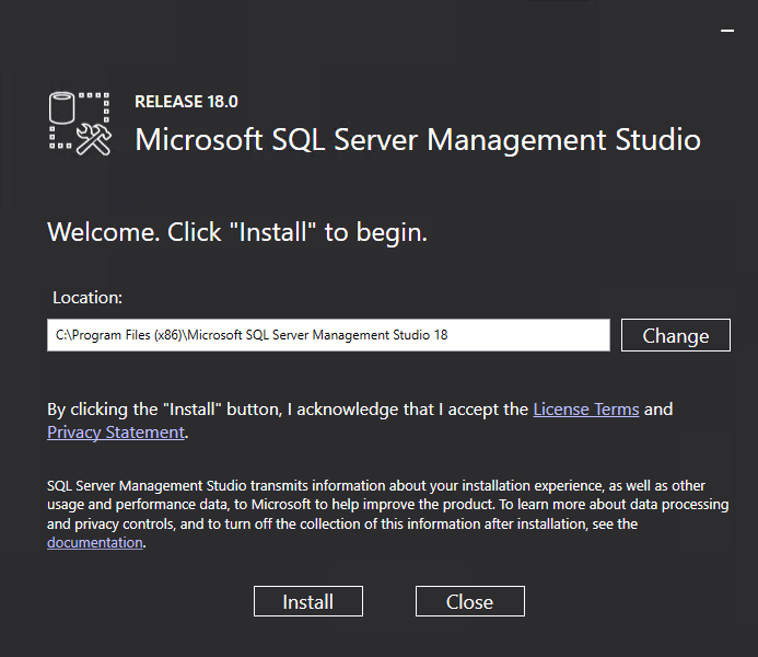 Install SQL Server Management Tools