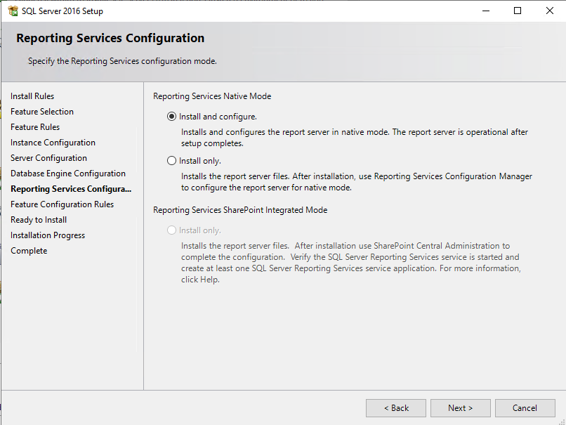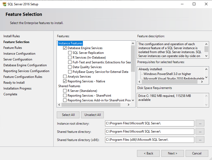 DataBase Engine Services, Reporting Services 체크 후 Next