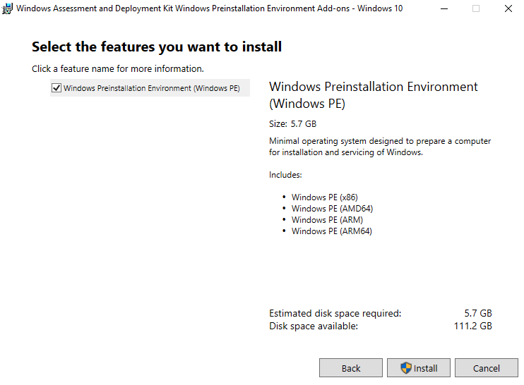 Download and install the Windows ADK
