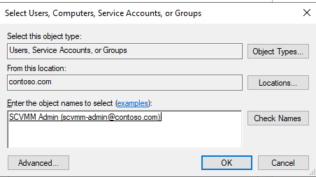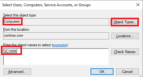 Object Types 를 Computers 로 변경후 SCVMM 머신 지정