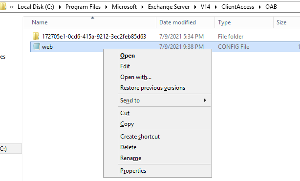 ex) C:\Program Files\Microsoft\Exchange Server\V14\ClientAccess\OAB\172705e1-0cd6-415a-9212-3ec2feb85d63