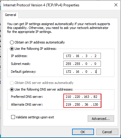 네트워크 설정에서 DNS는 외부 DNS를 사용합니다. (저는 SK DNS를 지정하였습니다.)