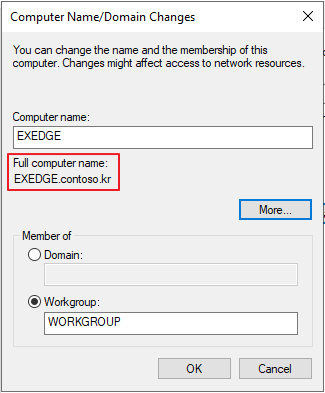 | Edge 전송 서버는 경계 네트워크에 설치되어 있기 때문에 조직의 내부 Active Directory 포리스트 구성원이 아니며 Active Directory 정보에 액세스할 수 없습니다. |