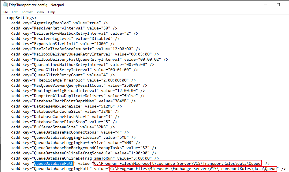 Notepad %ExchangeInstallPath%Bin\EdgeTransport.exe.config