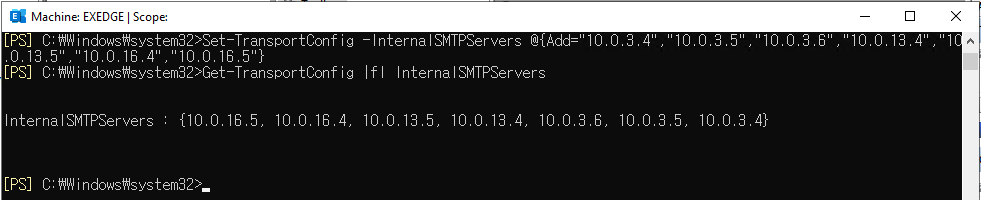 Set-TransportConfig -InternalSMTPServers @{Add="<ip address1>","<ip address2>"...}